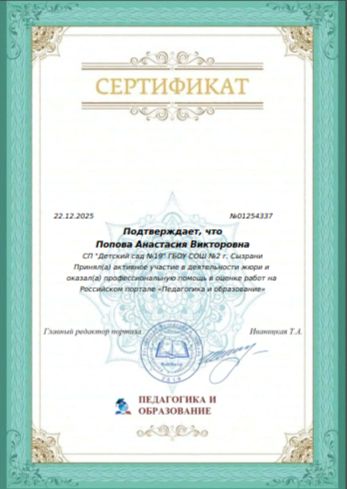 Опубликован 24.01.2026 - Размер: 347 × 489 в Участие в профессиональных конкурсах, публикации. Наградные документы Поповой А. В.