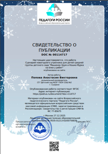 Публикация Попова 2025 Опубликован 24.01.2026 - Размер: 346 × 491 в Участие в профессиональных конкурсах, публикации. Наградные документы Поповой А. В. ← Назад
